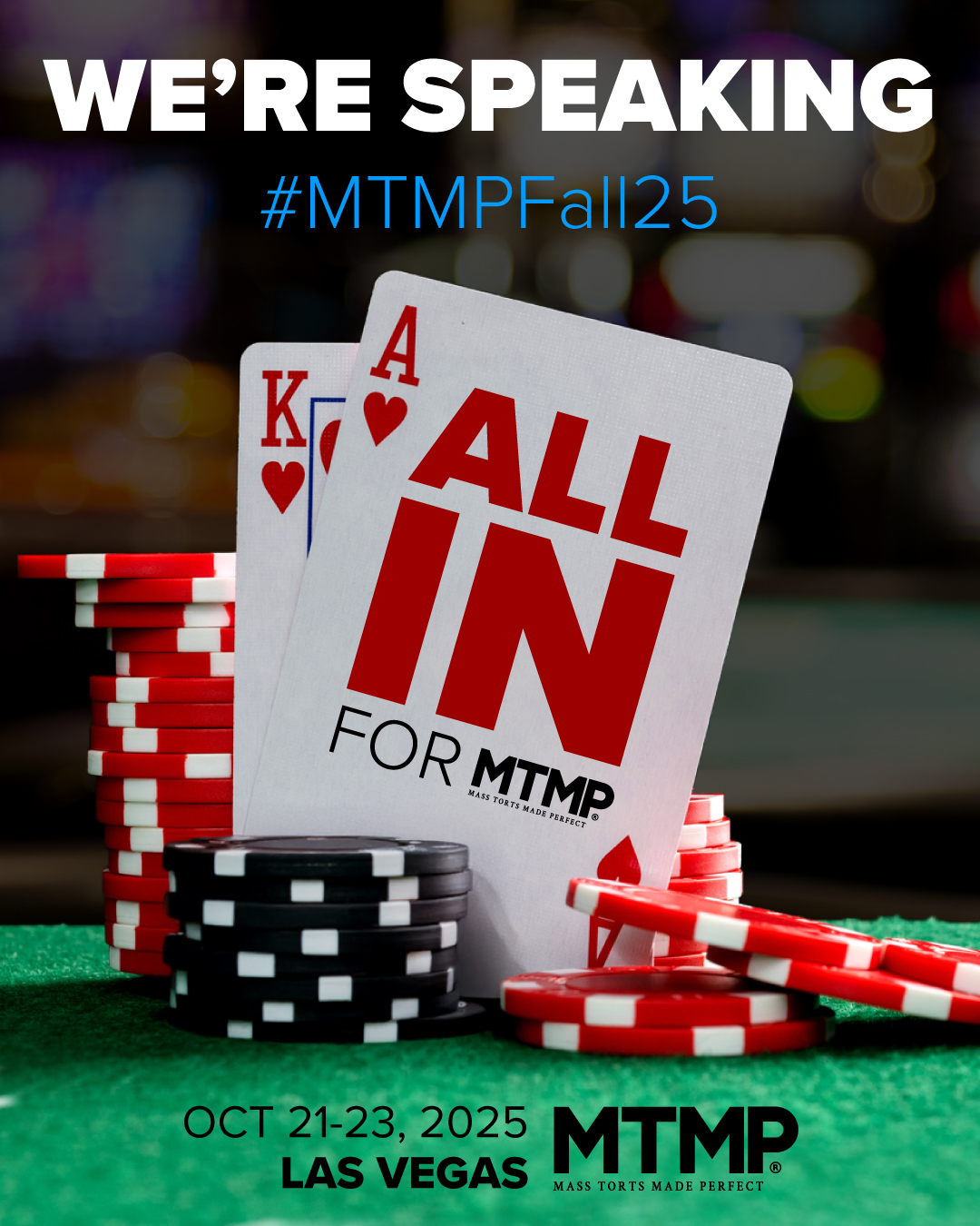 I’m all in for #MTMPFall25! Excited to head to Las Vegas this October to connect, learn, and be part of the biggest plaintiff mass tort event of the year. #MTMPFall25